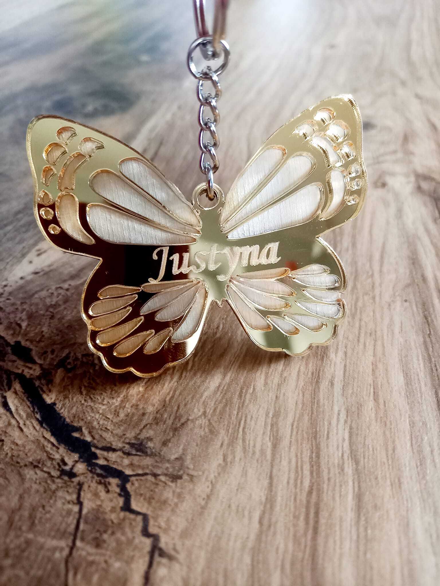Brelok, zawieszka złoty motylek z personalizacją imieniem